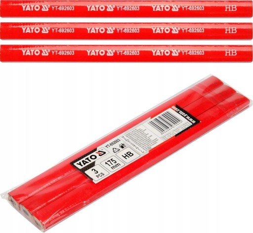 Komplet 3 szt. ołówków stolarskich marki YATO, długość 175 mm.