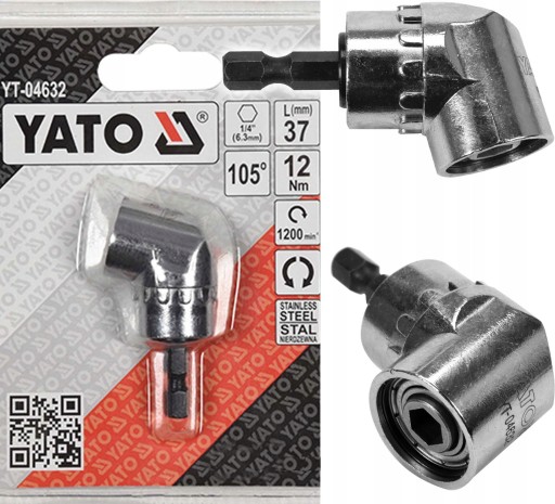Adapter kątowy marki YATO - z przekładnią, bardzo przydatny podczas pracy w trudno dostępnych miejscach.
