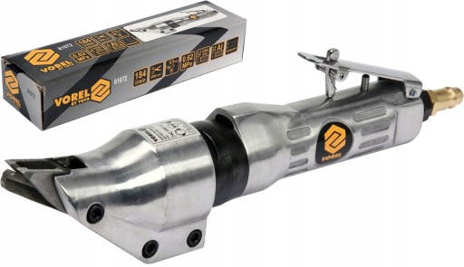 Nożyce pneumatyczne marki VOREL, przeznaczone do cięcia blachy stalowej i aluminiowej.