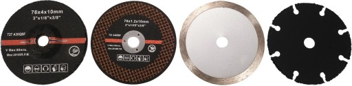 Przeznaczona do cięcia stali, ceramiki, sklejki, pcv i innych materiałów. W komplecie z tarczami (3sz): - korundowa do metalu - diamentowa ciągła do ceramiki - uniwersalna z nasypem wolframowym do drewna, sklejki, pcv, blachy.