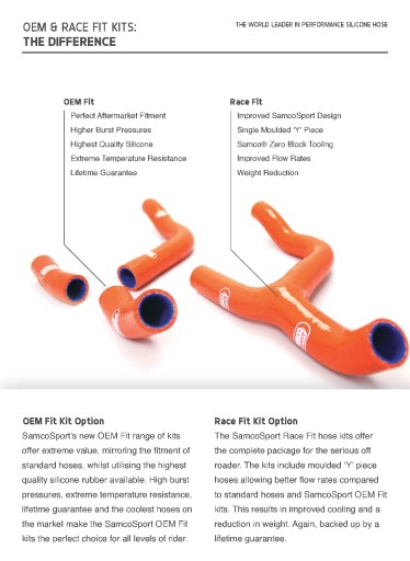Oferując ponad 400 bezpośrednich zestawów do ponad 100 motocykli i największą na świecie paletę części uniwersalnych dla sportów motorowych i samochodów wyścigowych, Samco Sport dostarcza najlepszej jakości węże silikonowe, zapewniając wyjątkową wydajność i gwarantowaną niezawodność.