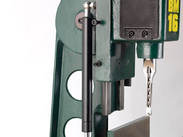 Dłutownica do drewna BM16 Record Power wyposażona jest w boczne i pionowe ograniczniki przesuwu, które pozwalają na łatwe ustawienie zarówno głębokości jak i szerokości wykonywanego otworu.
