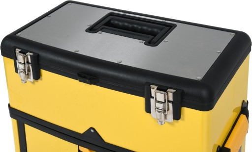 Górna skrzynka posiada blat ze stali nierdzewnej, uchwyt, wkładaną tackę. Wymiar zewnętrzny: 54x29,5x21,5cm, wymiar wewnętrzny: 49x26x13cm.