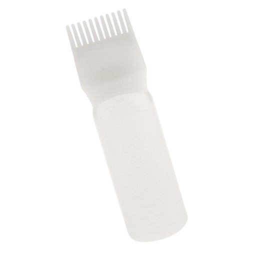 Wystarczy napełnić butelkę z ą wstępnie wymieszanym kolorem włosów i użyć uchwytu z pompką, aby barwnik przepłynął przez główkę grzebienia