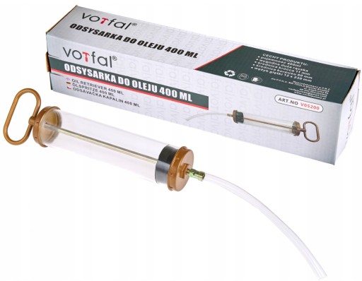 Ręczna strzykawka do oleju o pojemności 400 ml.