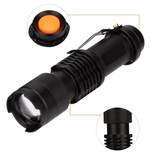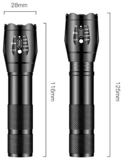 - Latarki wyposażono w funkcję ZOOM / zmienna ogniskowa z pełną regulacją skupienia wiązki światła, co umożliwia nam dokładne oświetlenie bliższych i dalszych obiektów.