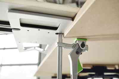 90°. Ani mniej, ani więcej. Ogranicznik wyfrezowany z jednego fragmentu aluminium gwarantuje precyzyjne i powtarzalne cięcia pod kątem prostym bez konieczności dodatkowej regulacji. Dzięki systemowi szybkiej wymiany, przykładnicę kątową można szybko przymocować do szyny prowadzącej, dzięki czemu w kombinacji z ręczną pilarką tarczową i stołem roboczym otrzymuje się mobilną pilarkę do płyt.