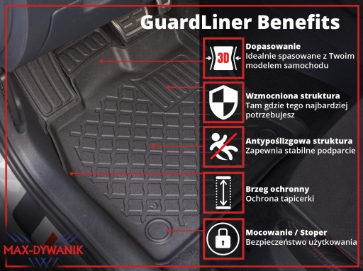Przedmiot oferty stanowią dedykowane dywaniki samochodowe Guardliner® renomowanej polskiej firmy ARISTAR® z korytkowym brzegiem ochronnym i mocowaniami w zestawie.