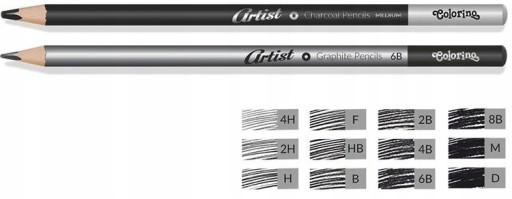 Wysokiej jakości ołówki grafitowe w 10 stopniach twardości oraz węgiel w dwóch stopniach twardości.
