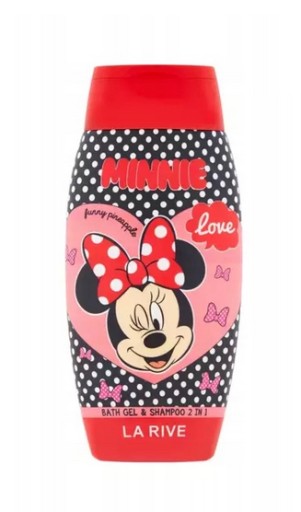 Żel pod prysznic i szampon Minnie Love od marki La Rive. Kosmetyk dla dziewczynek, które pragną przenieść się w Disneyowski świat Myszki Minnie. Łagodna formuła żelu i szamponu nie podrażnia i jest bezpieczna dla skóry jak i włosów. Zapach słodkiego melona, sprawi, że kąpiel stanie się znacznie przyjemniejsza.