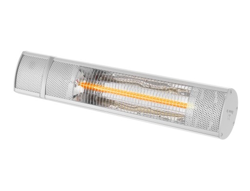 Źródłem ciepła jest szybko nagrzewająca się złota lampa halogenowa. Stopień ochrony IP55 umożliwia zawieszenie lampy w miejscach narażonych na opady atmosferyczne, np. na tarasie, w altanie, itp. Zestaw montażowy umożliwia zamontowanie promiennika na ścianie lub pod sufitem.