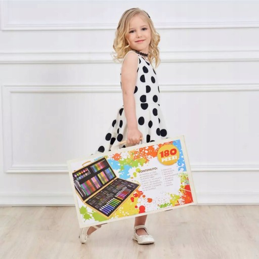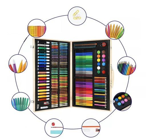 ✅Zestaw artystyczny do malowania kredki 180 el walizka drewniana