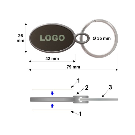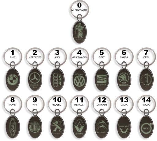 grawer na przedniej i tylnej stronie breloczka (opcje wyboru):