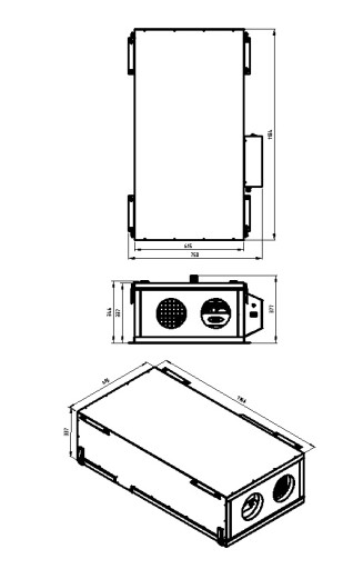 Obudowa wykonana jest z cienkich blach alum cynk obustronnie ocynkowanych, które są specjalnie kształtowane na obrabiarkach numerycznych i montowane na stałe przy pomocy nitów ocynkowanych tworząc sztywną samonośną konstrukcję. Materiał alum cynk zapewnia to doskonałą ochronę powierzchni które mają kontakt z powietrzem wentylacyjnym oraz uszczelnia wszystkie elementy obudowy. Pod względem akustycznym i termicznym, obudowa zabezpieczona jest 30 milimetrową warstwą wełny