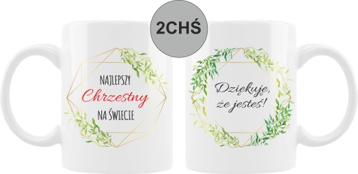 Nadruk na kubku jest stały (dla motywu 1CHŚ - Najlepsza Chrzestna na świecie, Dziękuję, że jesteś!, dla motywu 2CHŚ - Najlepszy Chrzestny na świecie, Dziękuję, że jesteś!) i nie podlega modyfikacjom.
