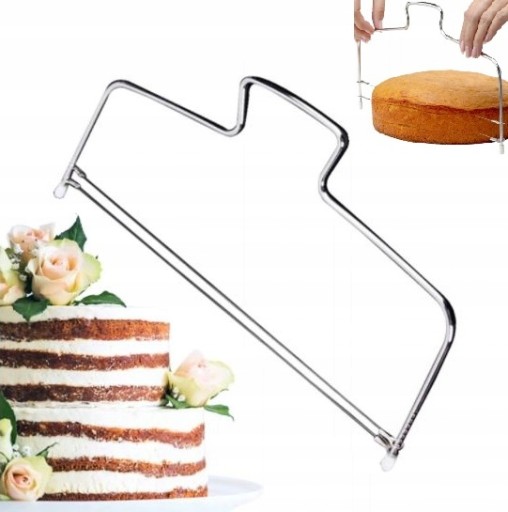 Bardzo przydatne narzędzie do równego przecinania biszkoptów. Nóż posiada dwie regulowane struny do cięcia ciast o różnej grubości, co umożliwia pewniejsze cięcie ciast i biszkoptów na nawet 3 kawałki jednocześnie.