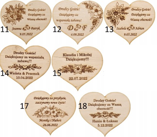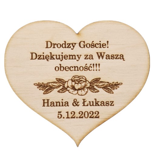Magnes SERCE podziękowanie dla gości gościom wesele Ślub GRAWER Drewno EKO