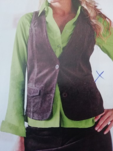 Komplet trzyczęściowy (wszystkie elementy z tego samego materiału) - brązowa marynarka, kamizelka i spódnica (czekoladowa), drobny sztruks: