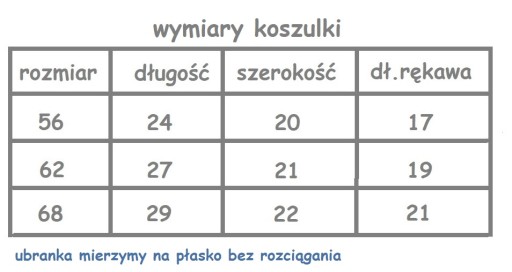Koszulka to niezbędny element wyprawki dla każdego maleństwa w pierwszych tygodniach życia.Zapewnia wygodę i komfort ruchów ,a dzięki kopertowemu zapinaniu jest bardzo łatwa do ubierania. Idealna w zestawie do śpioszków , lub pod pajacyka