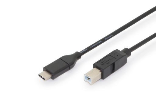 Kabel połączeniowy USB Typ-C, typ C do B M/M, 1,8m, 3A, 480MB, 2.0, czarnyWtyczka Typ-C dwustronnaDo podłączania zewnętrznych urządzeń końcowych USB (z gniazdem B, np. zewnętrzne dyski twarde, skanery lub drukarki) do hosta USB (np. komputer, notebook lub hub USB). Prędkość przesyłu danych do 480 Mbps (High-Speed).Możliwe zasilanie elektryczne do 3A. Obsługuje specyfikację USB PD (Power Delivery).