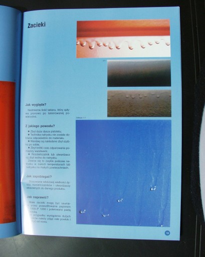 Wystawiony przeze mnie na aukcję poradnik nie jest nowy ale w bardzo dobrym stanie technicznym i wizualnym. W poradniku zebrano wady powłok wynikające z niewłaściwego procesu technologicznego, jak również defekty powłok powstające na skutek działania agresywnych czynników zewnętrznych. Poradnik jest bogato ilustrowany dobrej jakości zdjęciami oraz opisami dotyczącymi przy zdjęciach poszczególnych wad. Opisy te to: Jak wygląda dana wada ? – Z jakiego powodu powstała ? – Jak zapobiegać ? – Jak naprawić ?