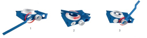 - MONTAŻ: Ze względu na niewielkie rozmiary oraz wysoką sztywność przewodu, można go montować w stropie, pod wylewką oraz pod tynkiem. Dzięki zastosowaniu specjalnego klucza oraz nożyka, montaż na budowie jest szybki i łatwy.