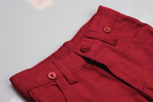 - Spodnie bordowe mają wizytowy krój