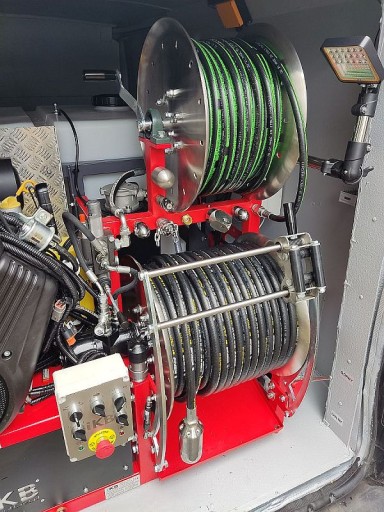 - bębn ze stali nierdzewnej o napędzie hydraulicznym z wężem wysokociśnieniowym dł. 60m NW 12 1/2"