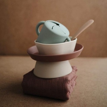 Miseczki, dostępne są w pięknych naturalnych kolorach, do których możesz łatwo dopasować śliniak Mushie jak i pozostałe elementy zastawy stołowej.