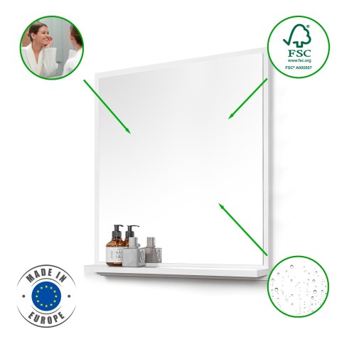 - odporność na wilgoć - Twoja półka z lustrem jest zabezpieczona przed wilgocią, możesz ją użytkować bez żadnych zmartwień.
