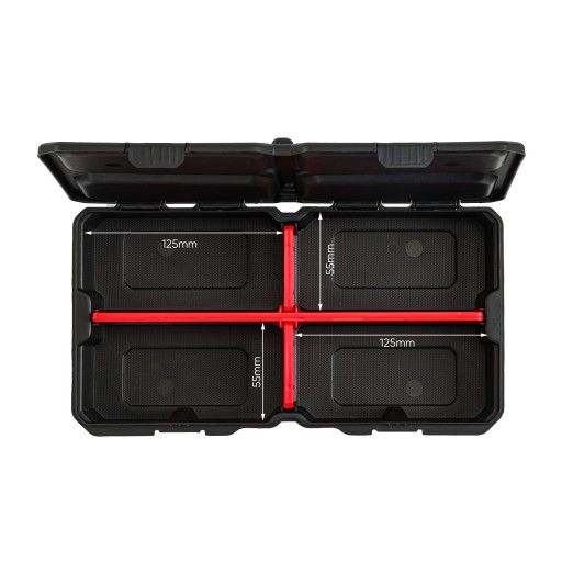 - Możliwość sztaplowania - Specjalnie zaprojektowana pokrywa umożliwia układanie organizerów jeden na drugim.