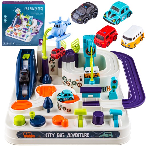 Tor przeszkód to zabawka pełna atrakcji - zaprojektowana w ten sposób aby przeprowadzić samochodzik aż do mety ale używając specjalnych przycisków! Samochodziki w trakcie "przeprawy" muszą nie raz zmienić kierunek jazdy, czy też pokonać m.in. zjeżdżalnię lub most zwodzony.