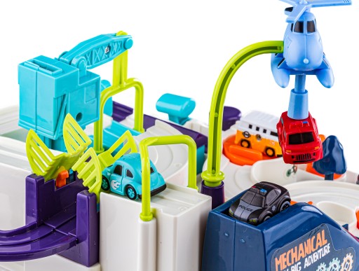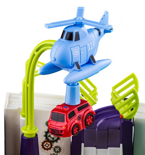 Zabawa parkingiem jest tym ciekawsza, im bardziej jest on rozbudowany i im więcej gadżetów posiada. A ten wielopoziomowy parking posiada ich wystarczająco dużo, by każda minuta zabawy była najwspanialszym momentem dnia.