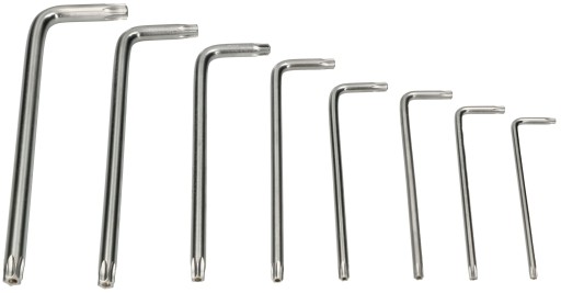 Klucze dostępne w różnych rozmiarach zapewniają stabilne połączenie ze śrubą, co sprawia, że nie wyślizgują się podczas pracy. Dzięki precyzji wykonania skrócisz czas potrzebny na odkręcenie lub dokręcenie danej śruby. Umożliwiają pracę w trudno dostępnych miejscach. Klucze są w kształcie litery "L", dlatego można je chwycić stabilnie i z łatwością.