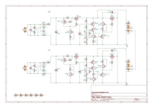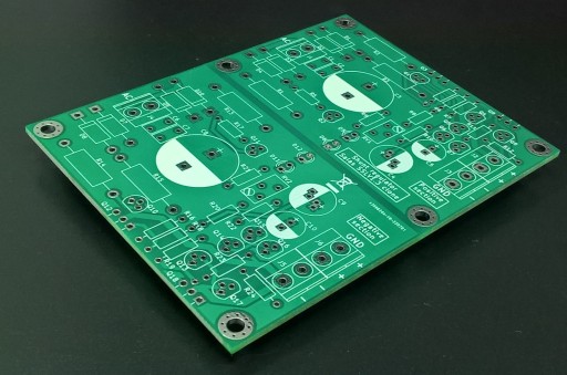 Płytka PCB bez elementów zasilacza linowego równoległego typu Shunt w aplikacji znanej jako Salas SSLV1.3 w układzie symetrycznym (napięcie dodatnie i napięcie ujemne). Zasilacz dedykowany jest do zasilania aplikacji audio.