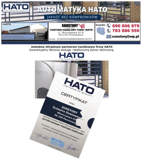 - Pasuje do wszystkich napędów HATO, NICE, BENINCA,SOMFY,