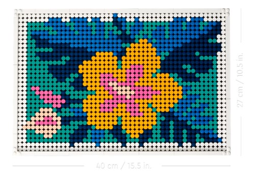 - Zestaw LEGO® Art ma ok. 40 cm wysokości i 27 cm szerokości.