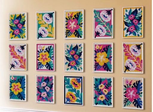 Zestaw LEGO® Art Sztuka kwiatowa (31207) z obrazem do powieszenia na ścianie stanowi źródło swobodnej, kreatywnej zabawy. Dzięki niemu zaprojektujesz i zbudujesz ozdobę pełną kolorów, a Twoja wyobraźnia rozkwitnie, gdy będziesz projektować własne motywy.