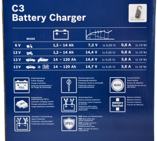 ЗАРЯДНОЕ УСТРОЙСТВО ДЛЯ АККУМУЛЯТОРА BOSCH C3 6В 12В