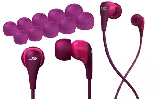 - Słuchawki UE 200vi ciemno purpurowe z mikrofonem i pilotem na kablu sterowanym trzema przyciskami.