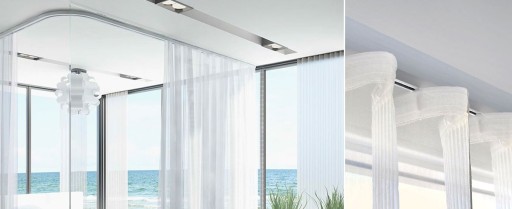 Szyny sufitowe są mało widoczne i bardzo estetyczne. Doskonale sprawdzą się w szerokich oknach i za osłonami z karton gipsu. Szyna KS pozwala na swobodne operowanie światłem poprzez całkowite odsłonięcie lub zasłonięcie zasłon nawet w pomieszczeniu o najbardziej nietypowym kształcie.