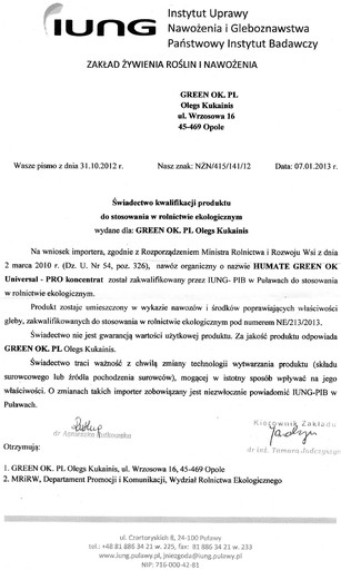 Stosowanie Humate Green OK wydatnie podnosi plonowanie roślin poprzez udostępnienie roślinom składników pokarmowych, graniczenie występowania chorób grzybowych i bakteryjnych oraz poprawę struktury gleby.