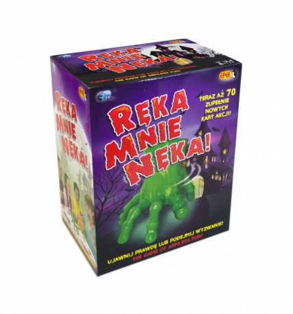 Ręka porusza się po niewielkim okręgu... Gdy się zatrzyma, wskaże palcem jednego z graczy, a ten będzie musiał wykonać zadanie z serii ,,Prawda" lub ,,Wyzwanie". Ręka Mnie Nęka to wspaniała gra dla całej rodziny! ,,Udawaj Tarzana", ,,Naśladuj King Konga" - to tylko przykładowe wyzwania, które wniosą mnóstwo śmiechu i radości do każdego domu!