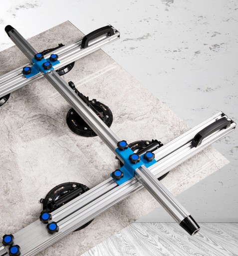 Pozycję każdej przyssawki można niezależnie regulować. W ten sposób dopasujesz ramę do przenoszenia różnych formatów płytek czy szkła.