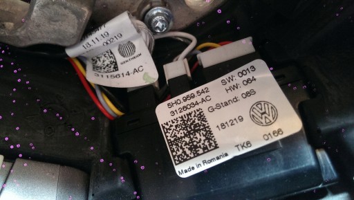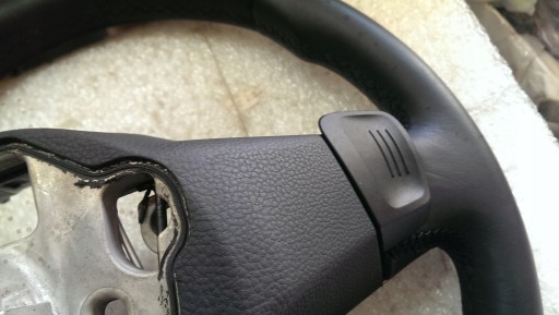 Skórzana kierownica + multifunkcja + manetki VW GOLF VIII nr. 5H0959542 i 5H0419089, oryginał z demontażu, stan-foto (kierownica w dobrym stanie), cena za 1 szt.