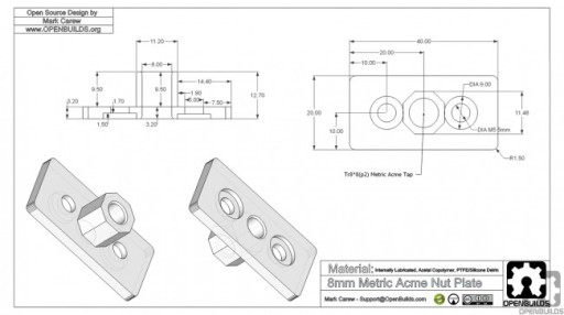 КРЕПЛЕНИЕ ДЛЯ ТРАПЕЦЕИДАЛЬНОГО ВИНТА 8 ММ ACME V-SLOT PL