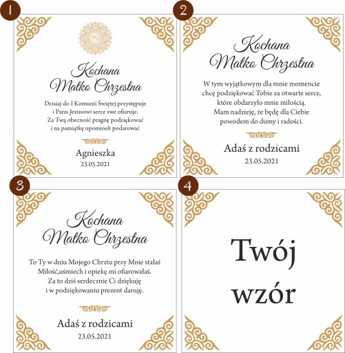Podziękowanie dla Chrzestnych z okazji Komunii Świętej lub Chrztu Świętego.