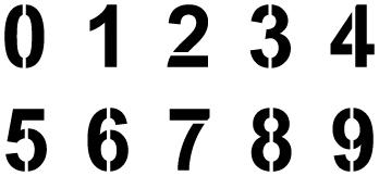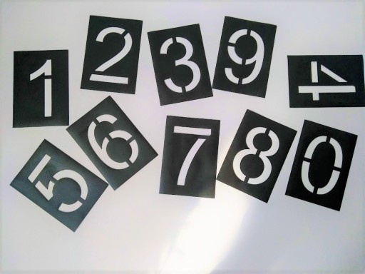 Na komplet składa się 10 szablonów: cyfry od 0 do 9