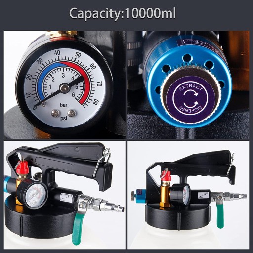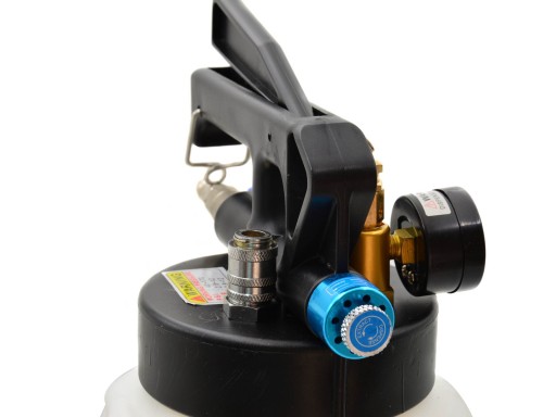 Pneumatyczna pompa ze zbiornikiem 10 litrów przystosowana do opróżniania i napełniania olejem automatycznych skrzyń biegów i mechanizmów różnicowych.