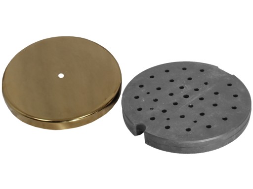 Podstawa o wadze ~5kg skutecznie stabilizuje słupek, a pokrywa w kolorze złotym stanowi estetyczne wykończenie.